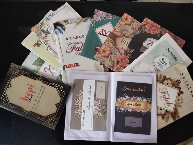 Cetak undangan pernikahan, khitanan, atau rasulan. Berbahan kertas premium dengan 2 atau 3 lipatan. Kertas berbau harum atau biasa. Free packing plastik dan kartu souvenir. Desain suka-suka/ custom.